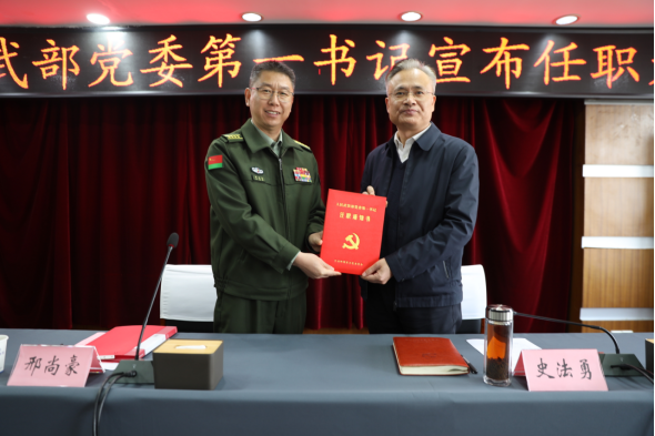 邢尚豪同志代表蚌埠军分区党委对史法勇同志任淮上区人武部党委第一书记表示祝贺,现场颁发任职通知书并讲话。他强调指出,落实党管武装,讲政治是第一要求、核心指标,在这个事关军队建设方向的重大问题上,任何时候都不能有丝毫含糊。