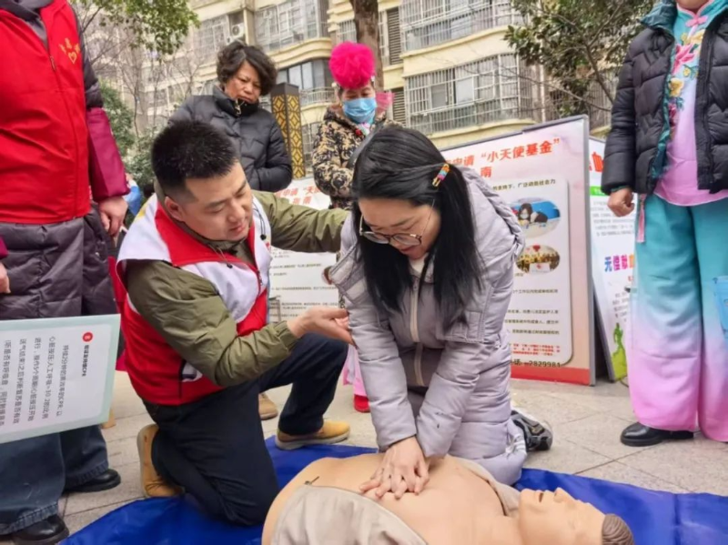 急救宣传环节红十字培训师资用通俗易懂的语言,结合实际案例,详细介绍了生活中常见急症、意外伤害和其他突发情况的应对方法。期间,还进行了心肺复苏的现场演示,每个动作都讲解得细致入微。在实践环节,培训老师更是耐心地将心肺复苏步骤逐一分解,手把手指导居民操作。居民们热情高涨,纷纷自告奋勇参与实操。现场气氛热烈,大家在轻松愉快的氛围中学习急救技能,欢声笑语交织成一片充满爱心的“十字网”。