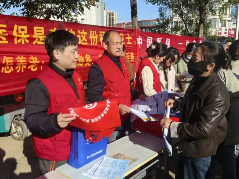11月11日上午,淮上区人社局在沫河口镇开展城乡居民养老保险宣传活动。
