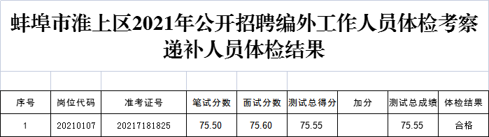 蚌埠市淮上区2021年公开招聘编外工作人员体检考察递补人员体检结果