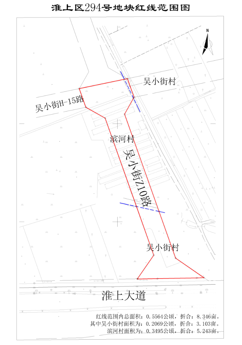 淮上区294号地块拟征收淮上区吴小街镇吴小街村7组、滨河村东台村民小组集体所有土地0.5564公顷(8.346亩),其中:农用地0.4488公顷(6.732亩),含耕地0.3250公顷(4.875亩)、永久基本农田0公顷(0亩);建设用地0.1076公顷(1.614亩);未利用地0公顷(0亩)。