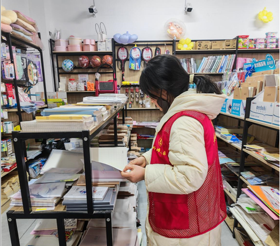 社区网格员仔细查看了各经营场所的营业执照、出版物经营许可证等相关证件是否齐全,是否存在销售非法出版物,盗版书籍、音像制品等情况,并积极向经营者宣传普及“扫黄打非”相关知识,要求各经营户提高责任意识和法律意识,合法合规经营,共同关爱未成年人的健康成长。