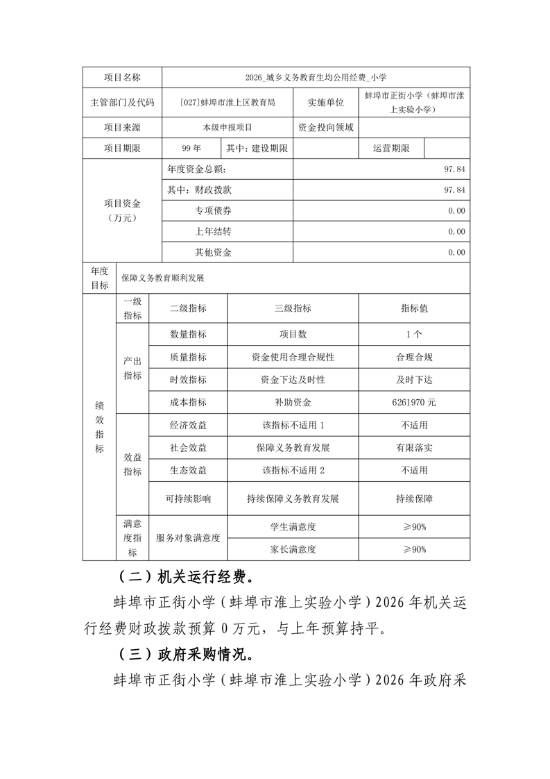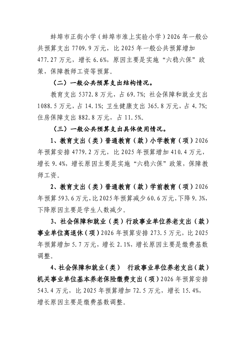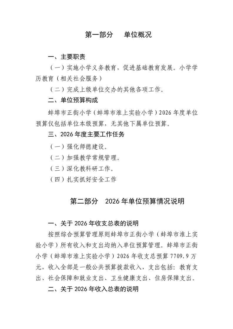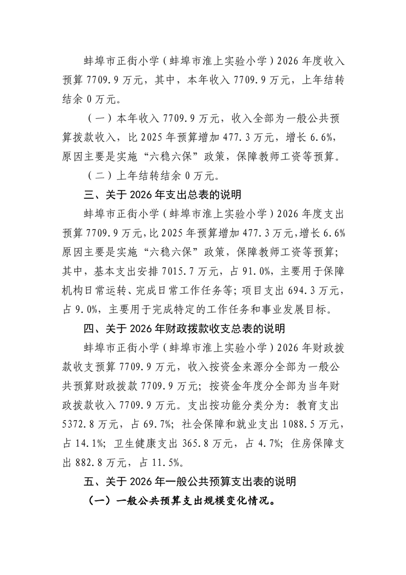 蚌埠市正街小学(蚌埠市淮上实验小学)2026年单位预算