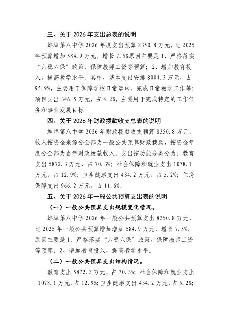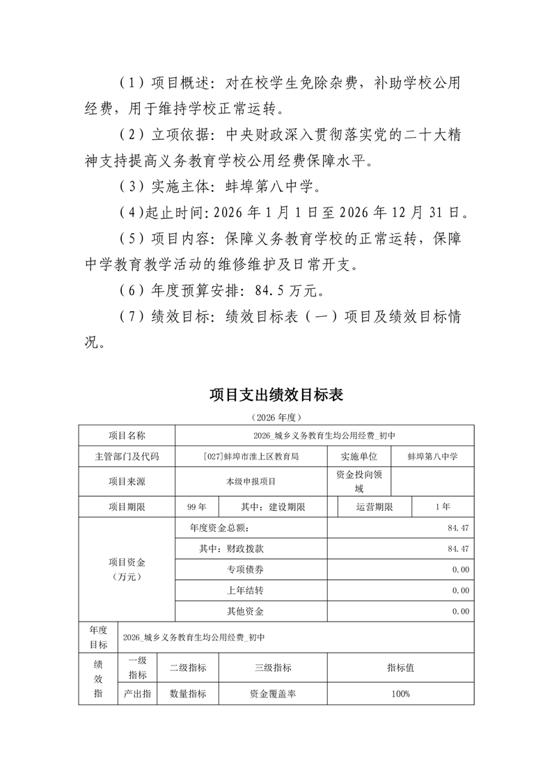 蚌埠第八中学2026年单位预算 |