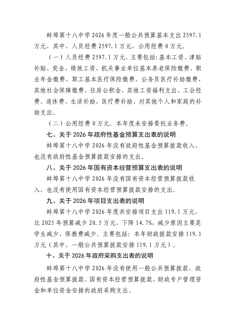 蚌埠第十八中学2026年单位预算 |