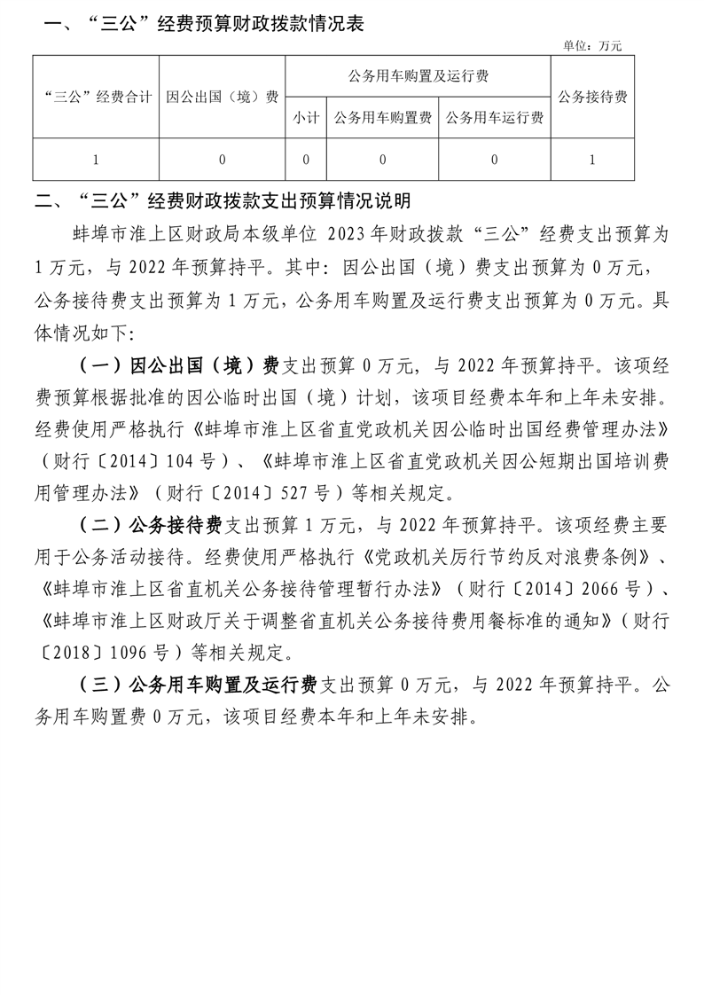 蚌埠市淮上区财政局(本级)单位2023年“三公”经费预算公开