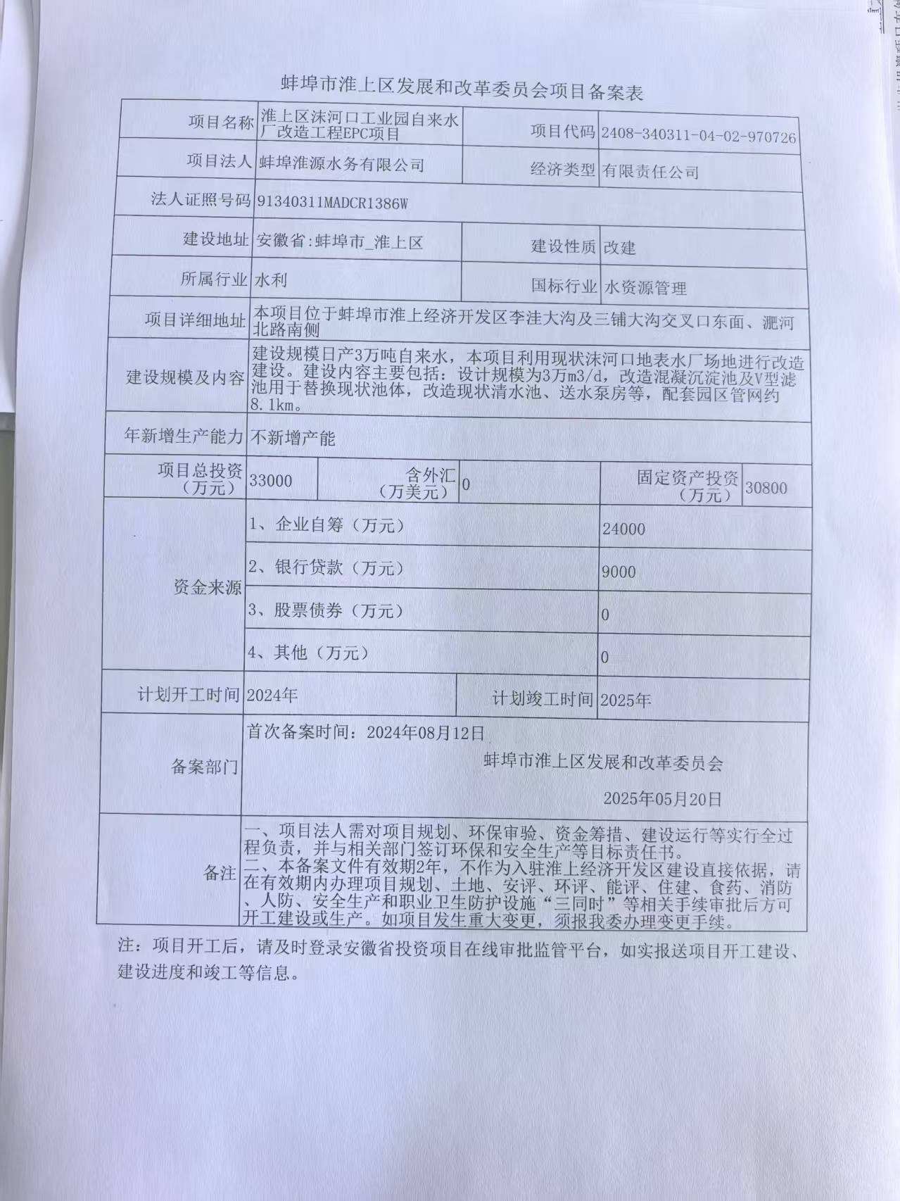 淮上区沫河口工业园自来水厂改造工程EPC项目