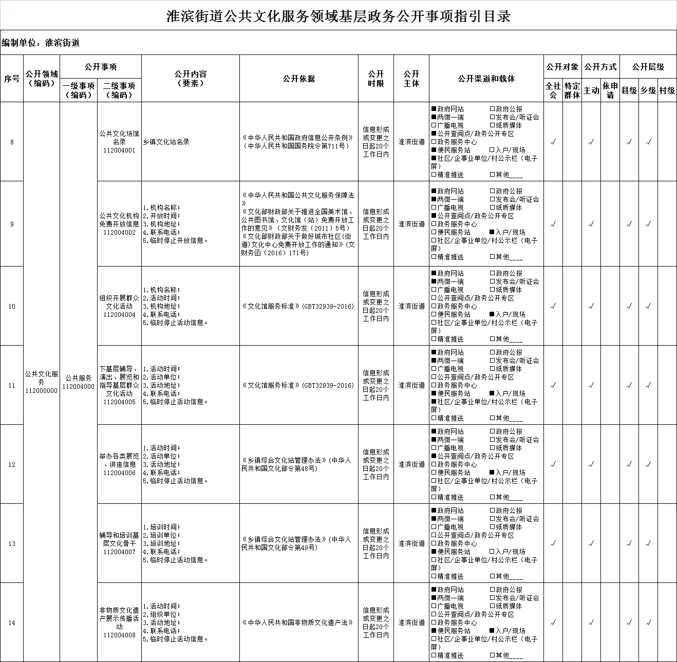 公共文化服务领域基层政务公开事项指引目录