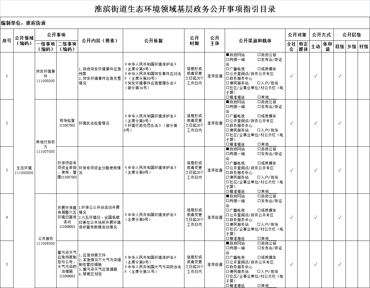 生态环境领域基层政务公开事项指引目录