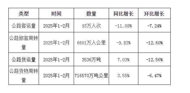 蚌埠市2025年1-2月道路客运及货运运输量统计信息