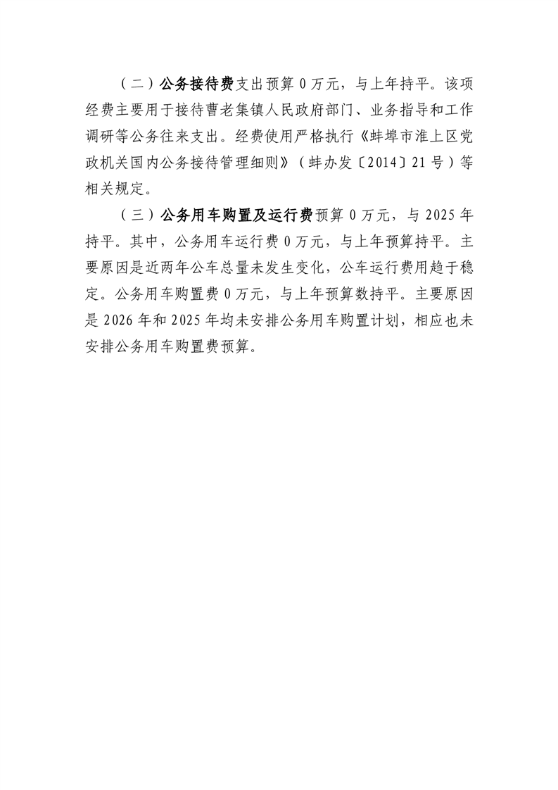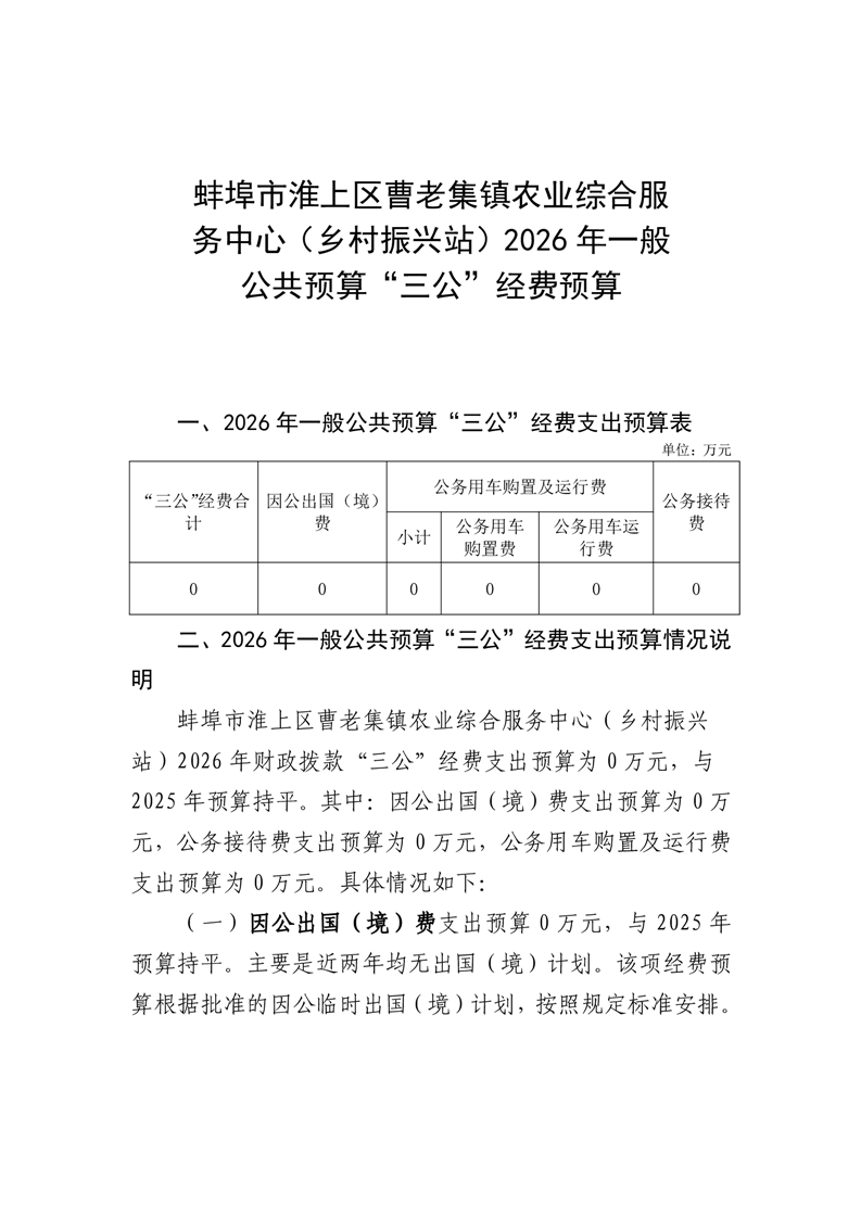 蚌埠市淮上区曹老集镇农业综合服务中心(乡村振兴站)2026年单位”三公“经费安排情况