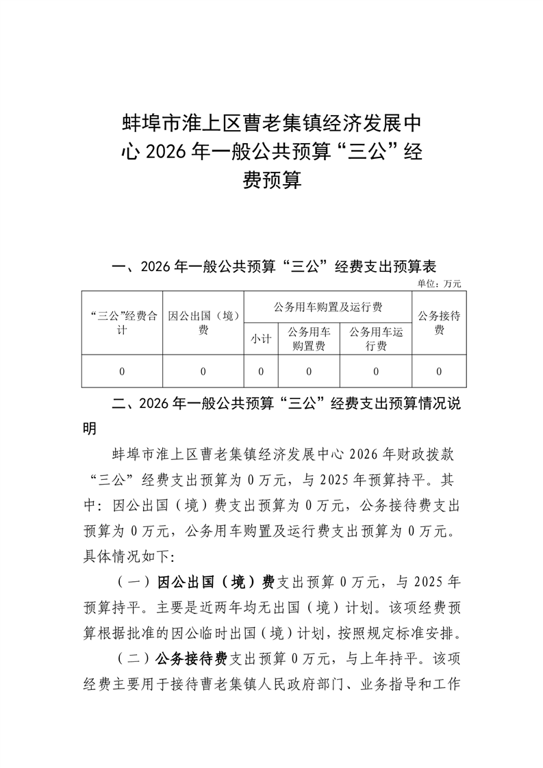蚌埠市淮上区曹老集镇经济发展服务中心2026年单位”三公“经费安排情况