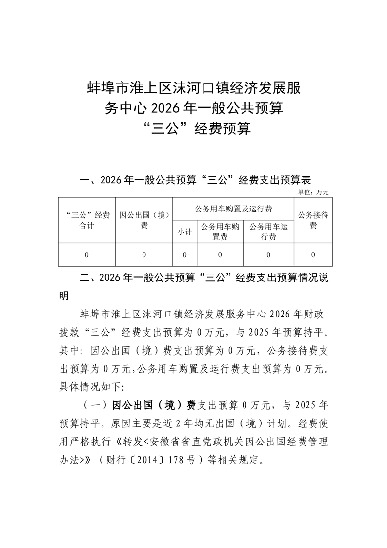 蚌埠市淮上区沫河口镇经济发展服务中心2026年单位“三公”经费预算情况