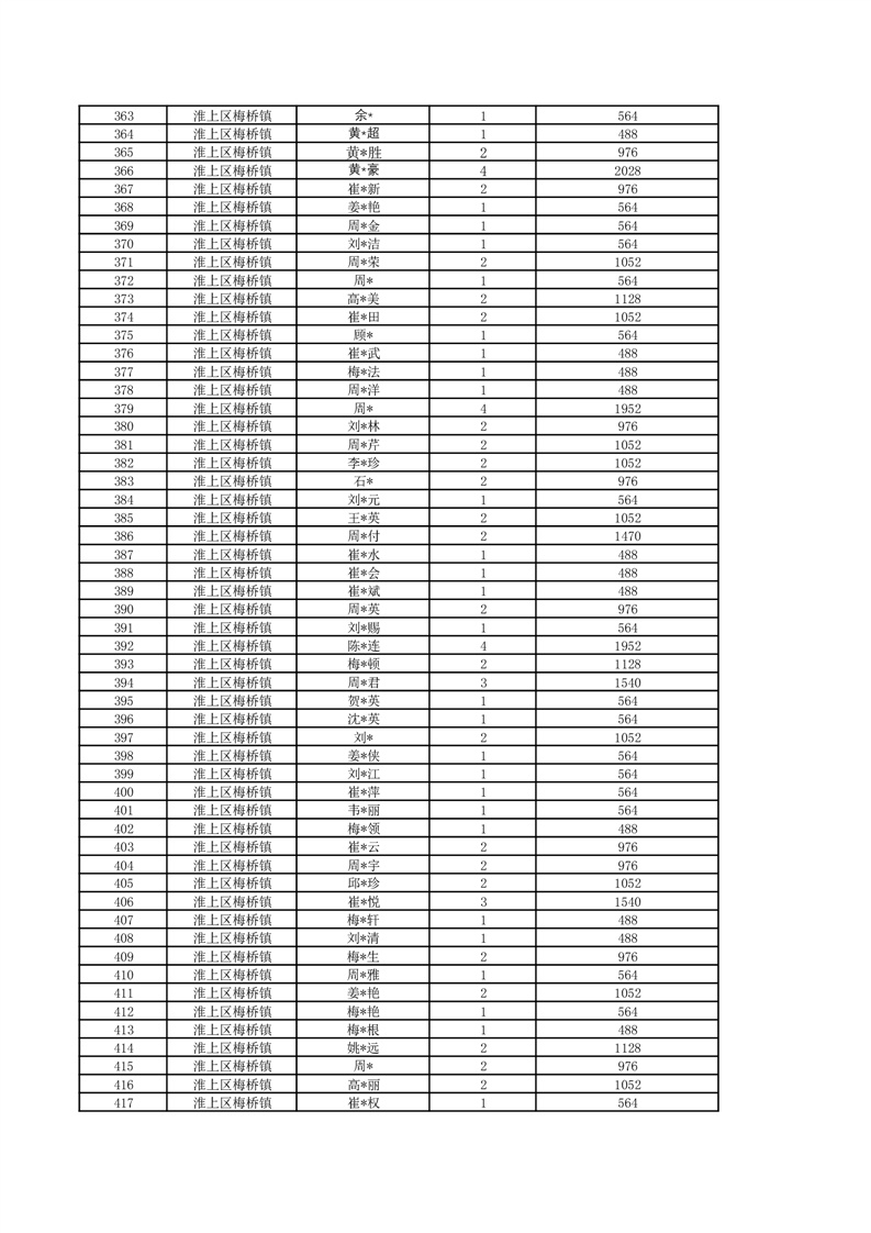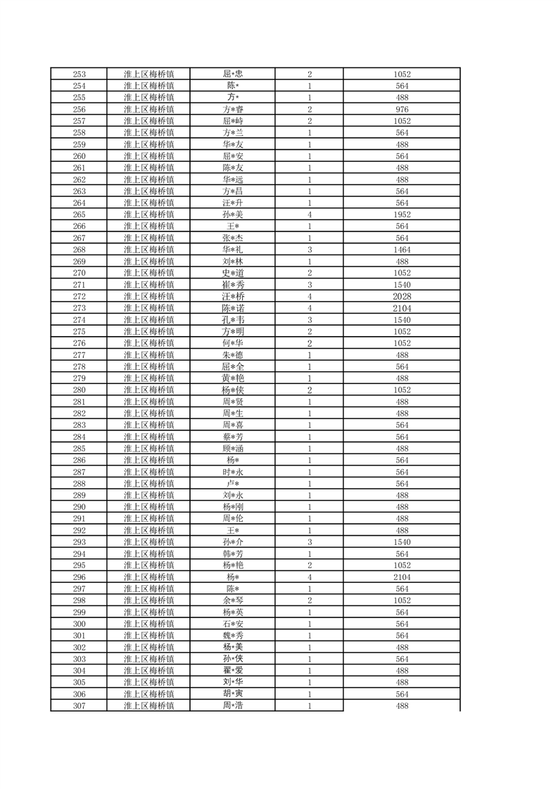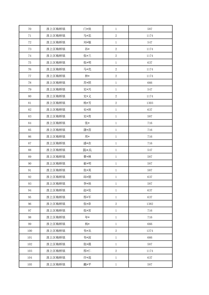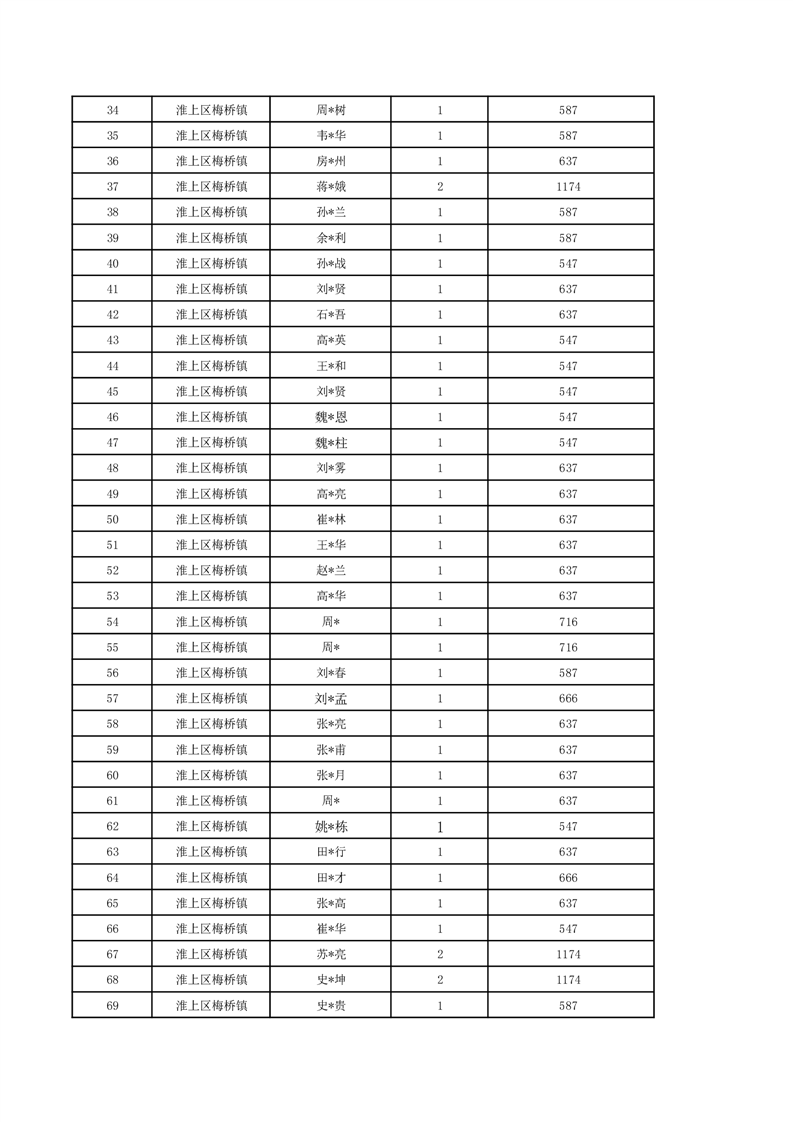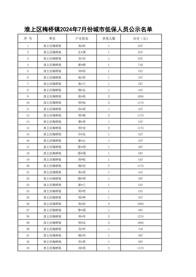 梅桥镇2024年7月城乡低保花名册